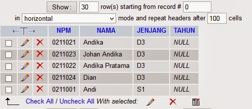 Dari gambar tersebut akan terlihat Field TELP untuk NPM 0211021 atas nama Andika yang sebelumnya NULL telah teredit dengan nilai 2002